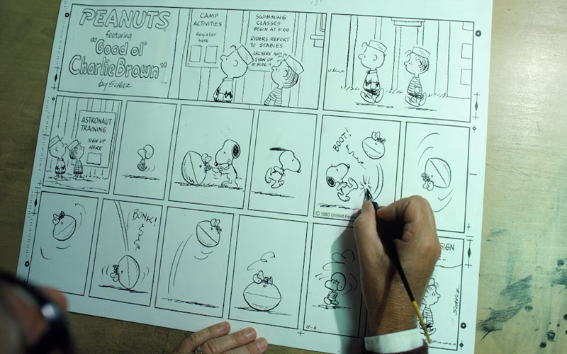 Charles Schulz dibuja una de las entregas de Peanuts
