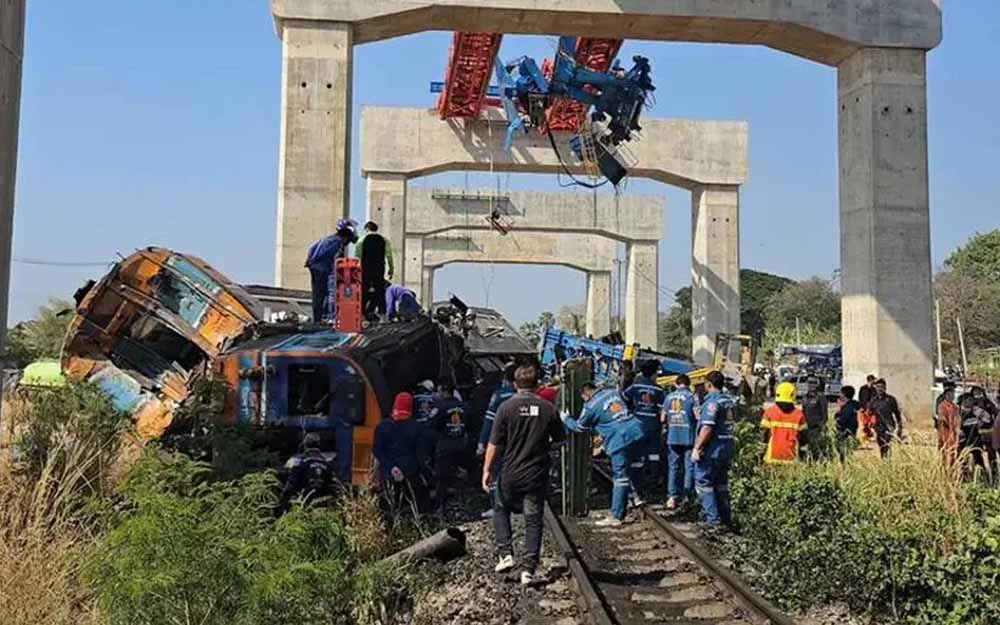 Según informes de medios internacionales el trágico hecho ocurrió en la localidad Ban Thanon Khot, subdistrito de Si Khiew, cuando la grúa cedió sobre un tren que viajaba de Bangkok a la provincia de Ubon Ratchathani.