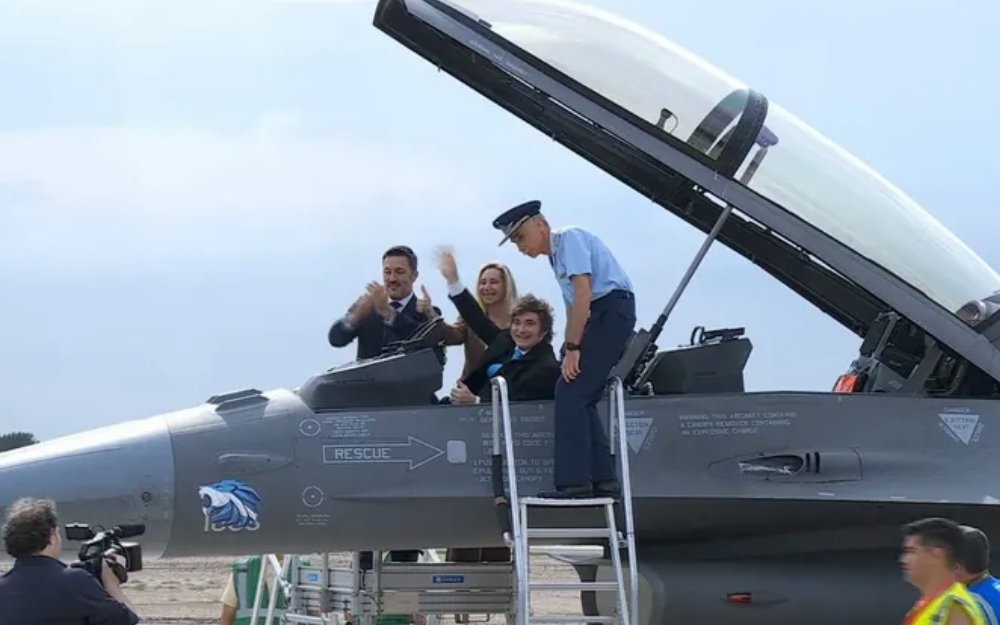 Luego de la ceremonia, Milei sorprendió a los presentes al subir a uno de los flamantes cazas. Lo hizo acompañado por la secretaria general de la Presidencia, Karina Milei, el exministro de Defensa Luis Petri, impulsor original de la negociación, y su sucesor en el cargo, Carlos Presti, quienes compartieron la recorrida por la cabina y posaron para las fotografías oficiales.