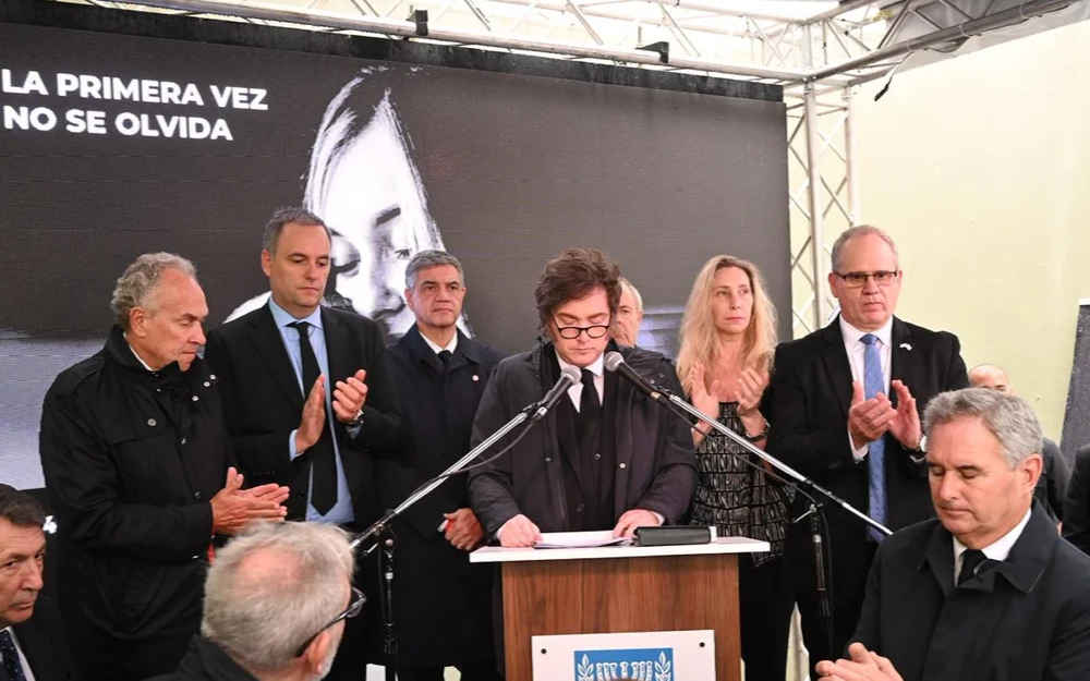 Acompañado por el jefe de Gobierno de la Ciudad, Jorge Macri; el jefe de Gabinete, Manuel Adorni; y la secretaria de Presidencia, Karina Milei, el manatario señaló que “hay que hacer memoria” ante “el cobarde ataque del terrorismo iraní” que dejó un saldo de 29 muertos y más de 200 heridos: “Es una herida en el pueblo argentino, en la comunidad judia y en los simientos morales de nuestra sociedad”, agregó.